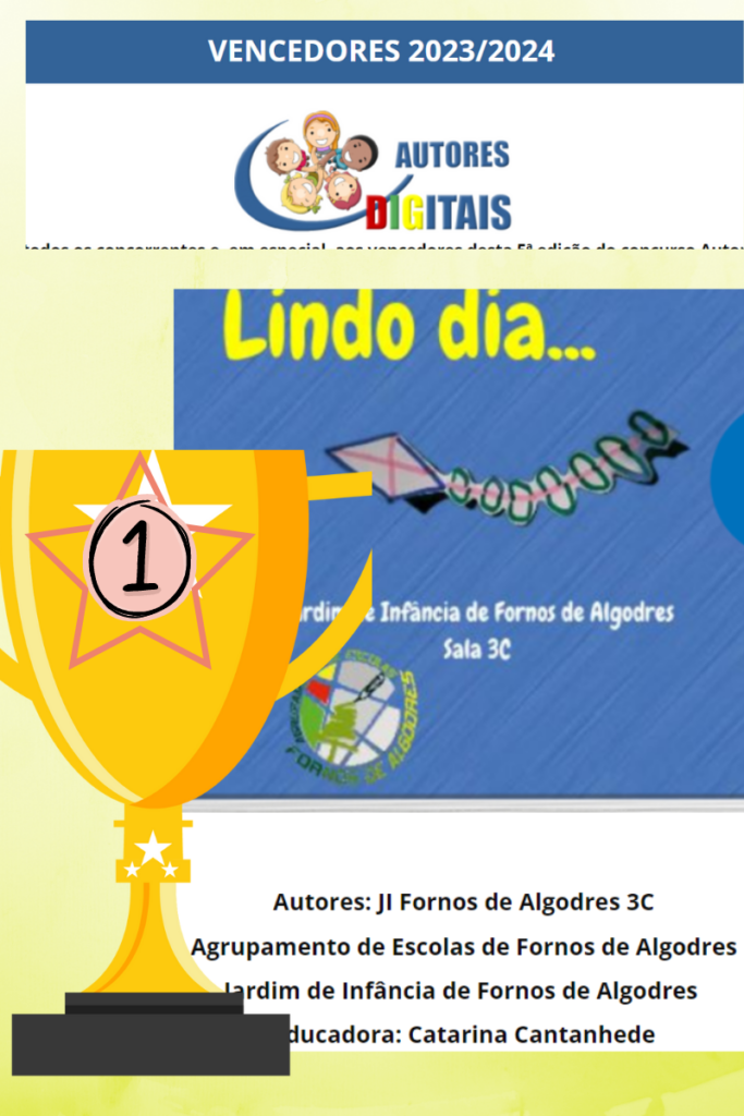 No dia 7 de junho recebemos a fantástica notícia que a sala 3C do jardim de infância de Fornos de Algodres tinha obtido o 1º lugar do concurso “Autores digitais”, na categoria Pré-escolar, promovido pelo CCTIC de Santarém, com a história “Lindo dia…” elaborada na plataforma digital Storyjumper.