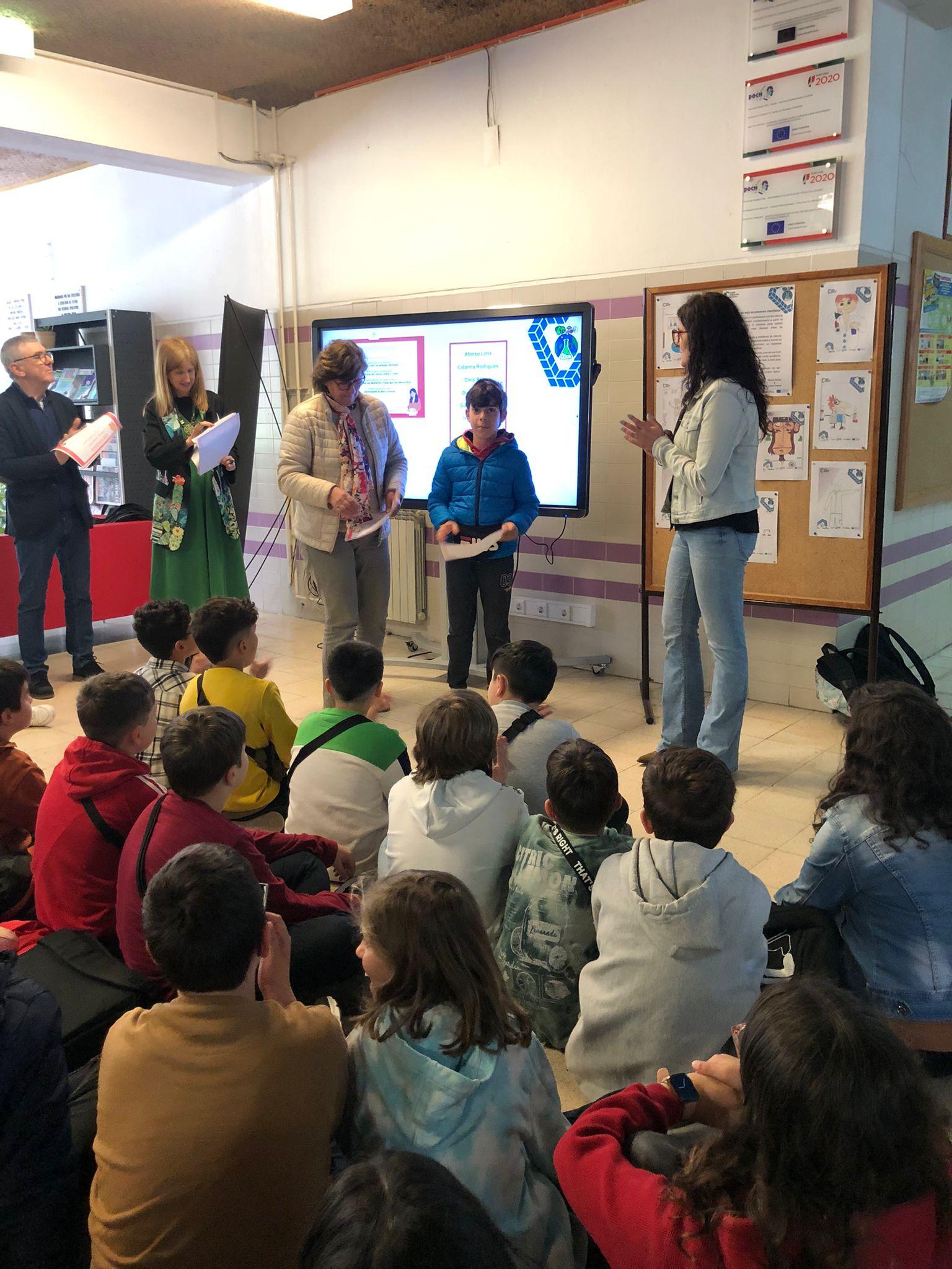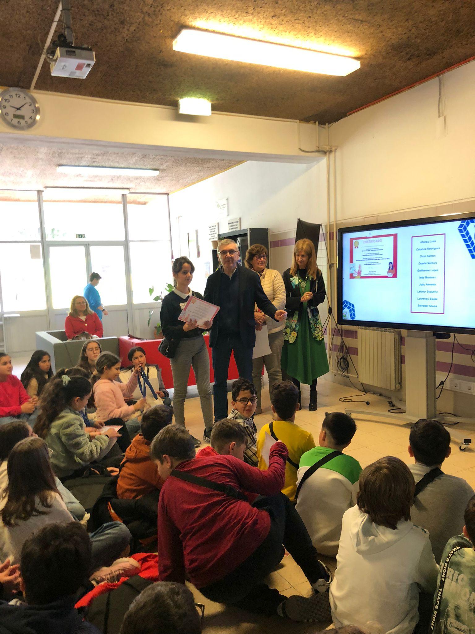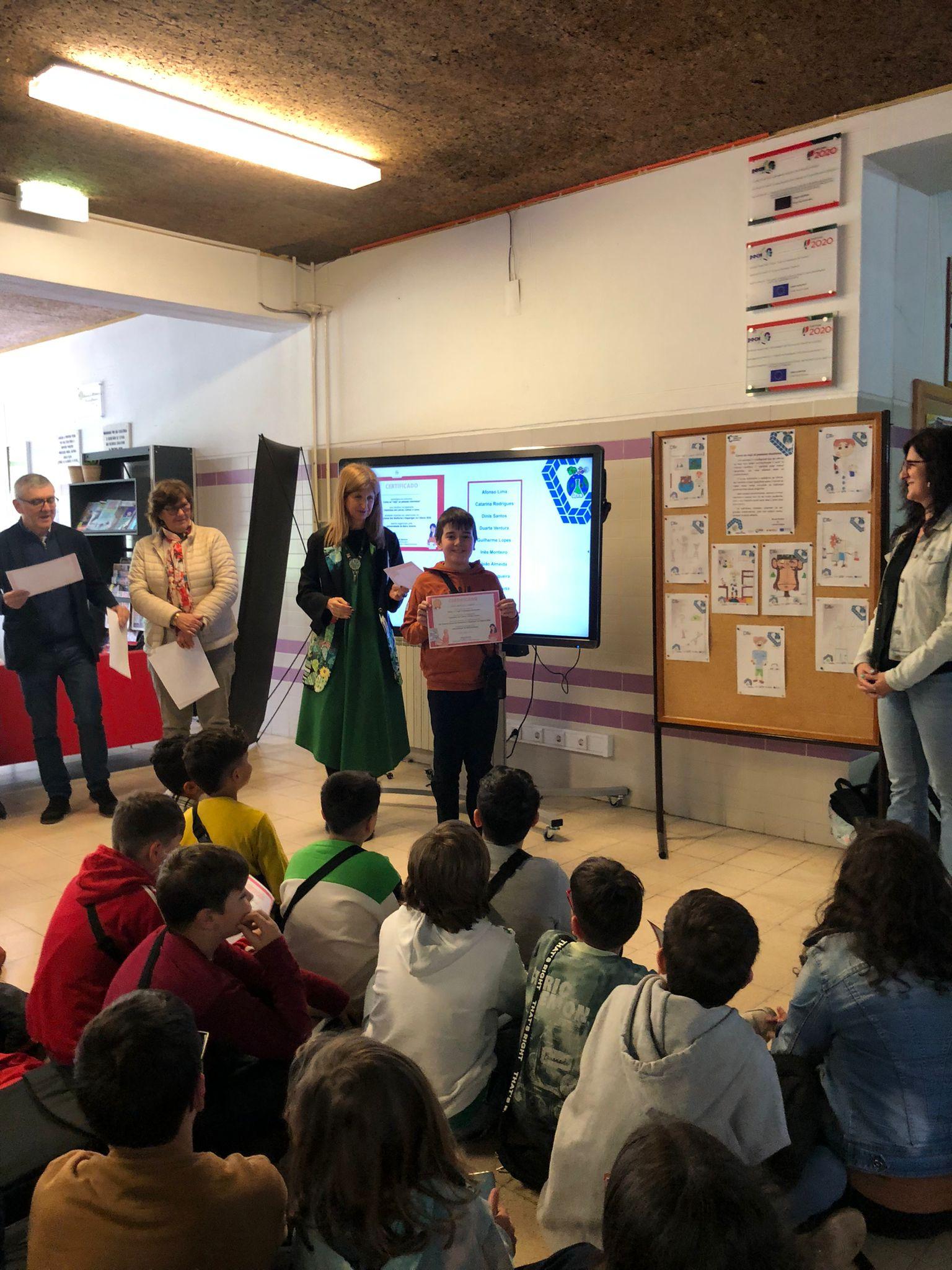 Hoje as alunas do 5ºA, Bruna Rocha e Luana Cabral, receberam os certificados e os prémios por terem alcançado o 1.º Lugar no concurso “Como eu “vejo” as pessoas cientistas?” que resultou na exposição Cientistas em Letras, Linhas e Cores, atividade inserida nas celebrações do Dia Internacional das Mulheres e Raparigas na Ciência 2024, evento organizado pela Universidade da Beira Interior e dinamizado na escola pelo Clube de Ciência Viva.