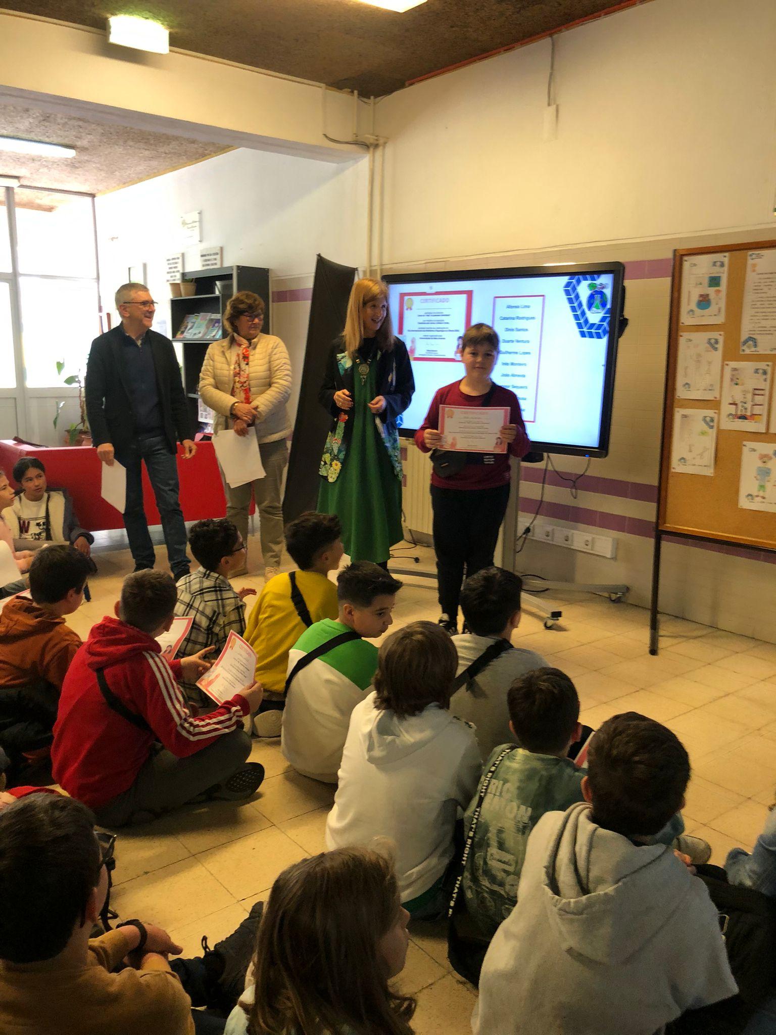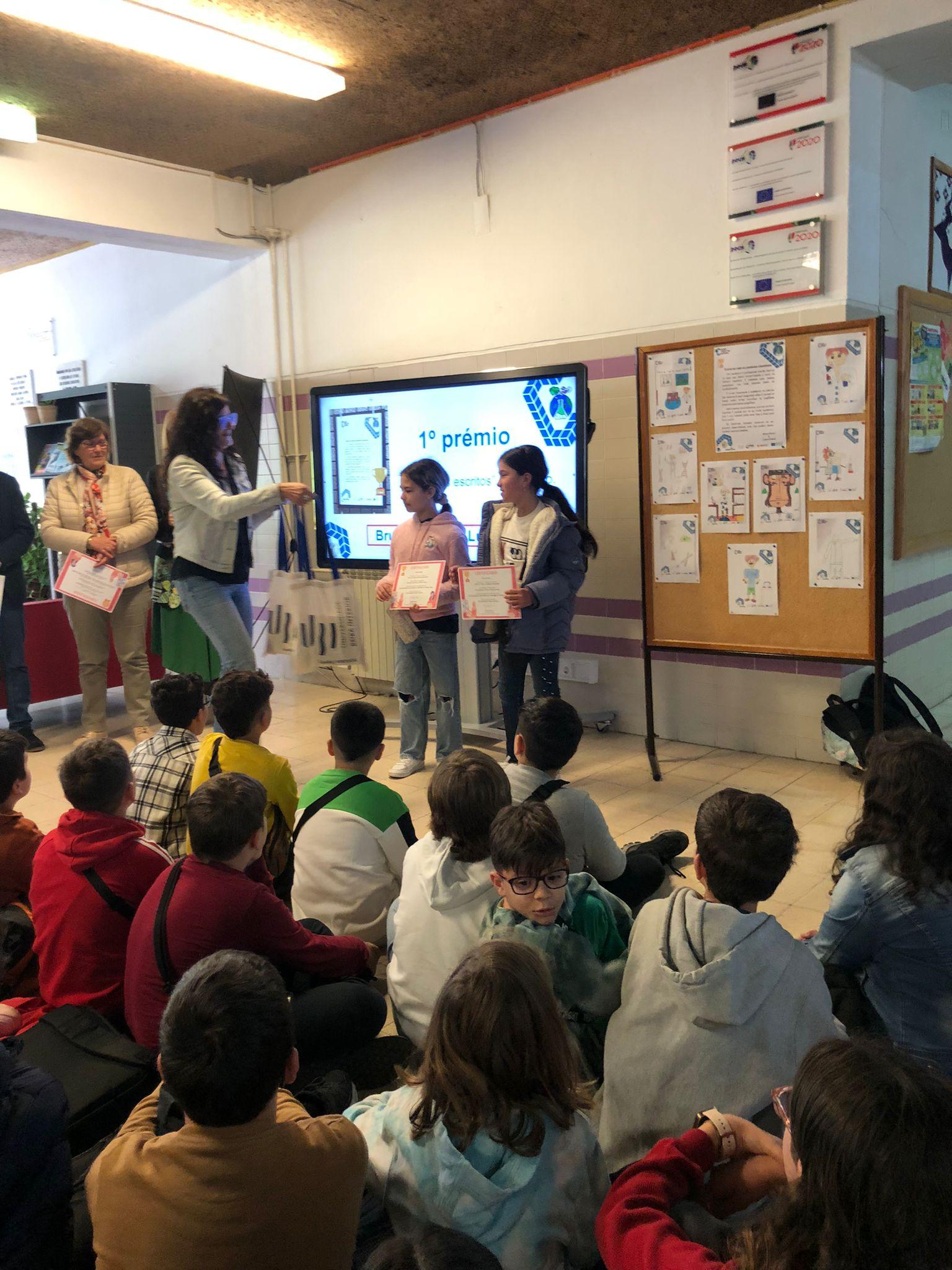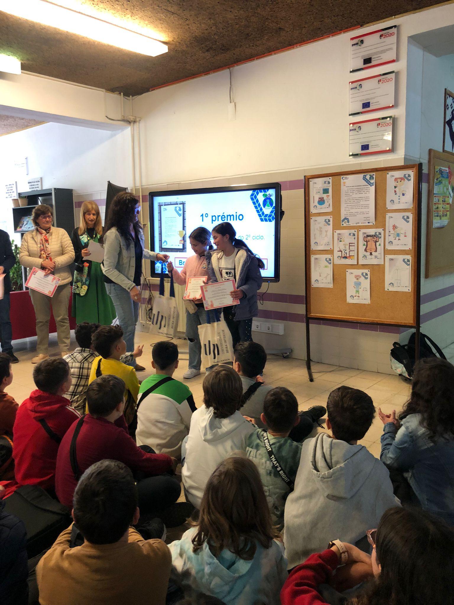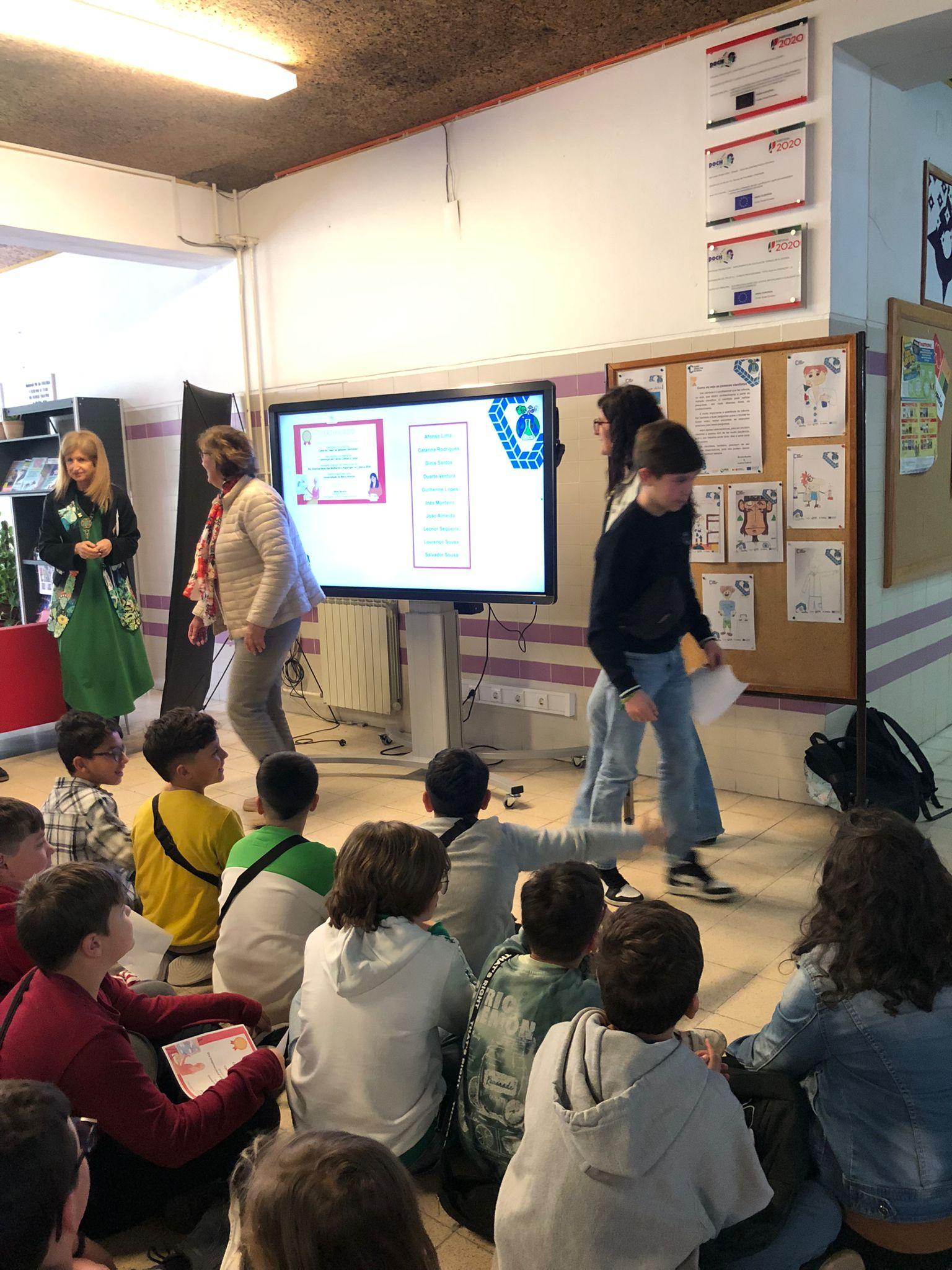 Hoje as alunas do 5ºA, Bruna Rocha e Luana Cabral, receberam os certificados e os prémios por terem alcançado o 1.º Lugar no concurso “Como eu “vejo” as pessoas cientistas?” que resultou na exposição Cientistas em Letras, Linhas e Cores, atividade inserida nas celebrações do Dia Internacional das Mulheres e Raparigas na Ciência 2024, evento organizado pela Universidade da Beira Interior e dinamizado na escola pelo Clube de Ciência Viva.