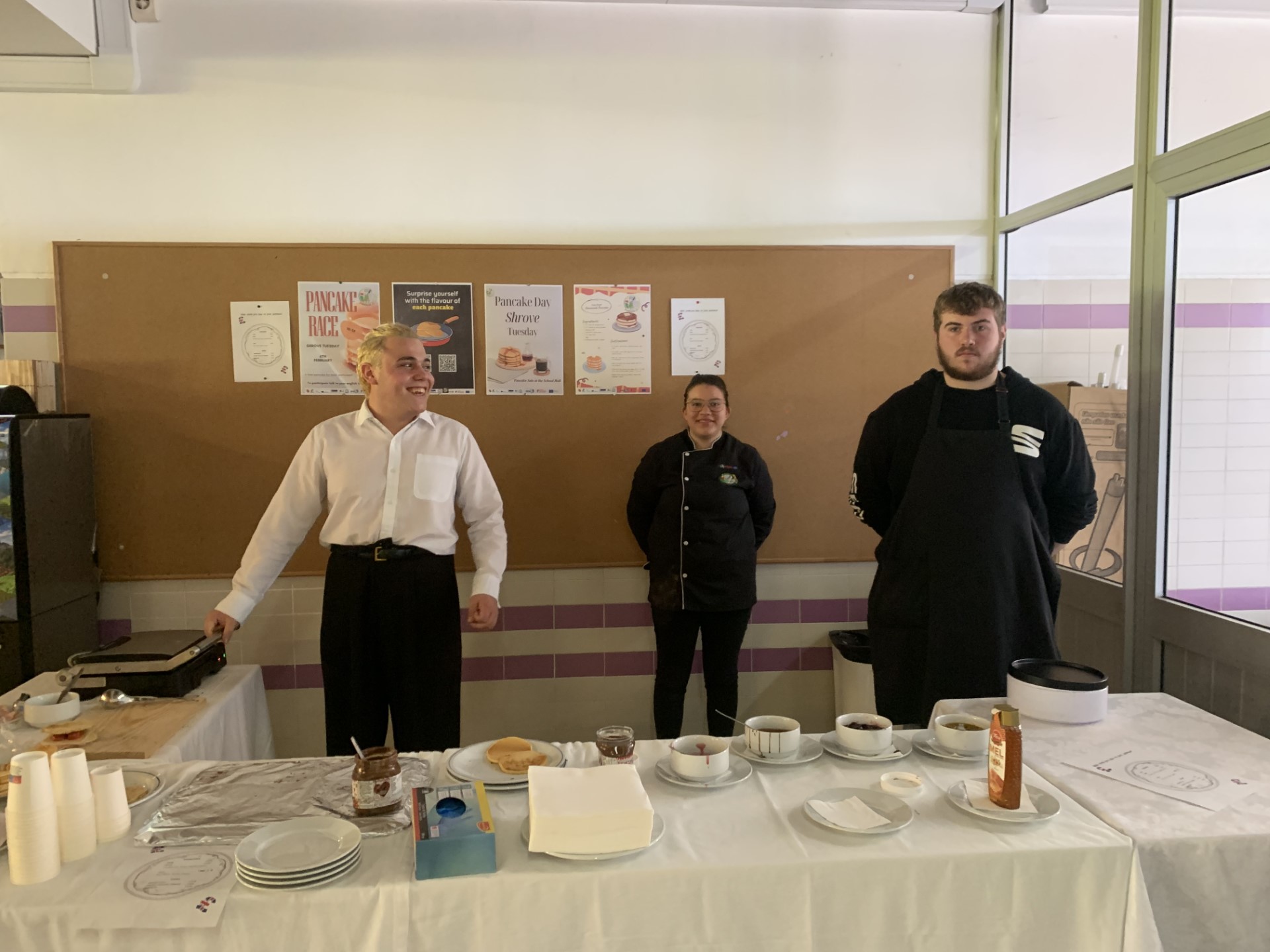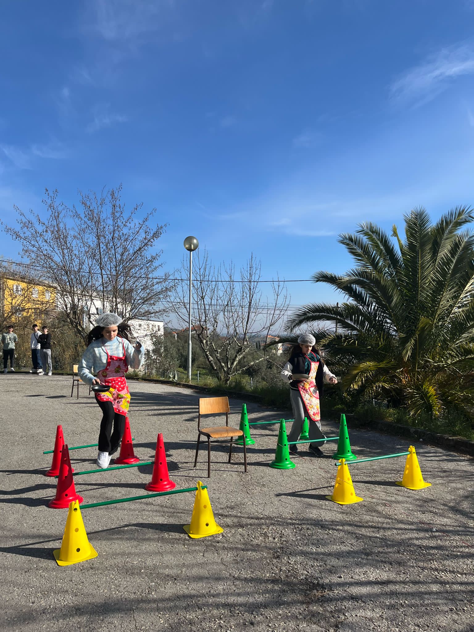 Na terça-feira, dia 6 de fevereiro, realizou-se uma corrida de panquecas no AEFA, no âmbito da atividade “Celebrating… Shrove Tuesday”. Os participantes, equipados a rigor, divertiram-se ao longo do percurso preparado pelos alunos da turma do 11.ºB – Curso Profissional de Técnico de Desporto. No final da corrida, tiveram direito a uma panqueca deliciosa confecionada pelos alunos da turma do 12.ºB – Curso Profissional de Técnico de Restauração/Bar, os quais também organizaram uma venda de panquecas que decorreu ao longo da manhã. A atividade foi divulgada através de cartazes e de um vídeo elaborados pelos alunos da turma do 12.ºB – Curso Profissional de Técnico de Informática/Sistemas. Os alunos dos três cursos tiveram a ajuda preciosa das professoras Ana Lourosa, Fátima Figueiredo e Ana Morgado. Gostaríamos de agradecer a participação e colaboração de todos os que tornaram possível a realização desta atividade extremamente divertida!