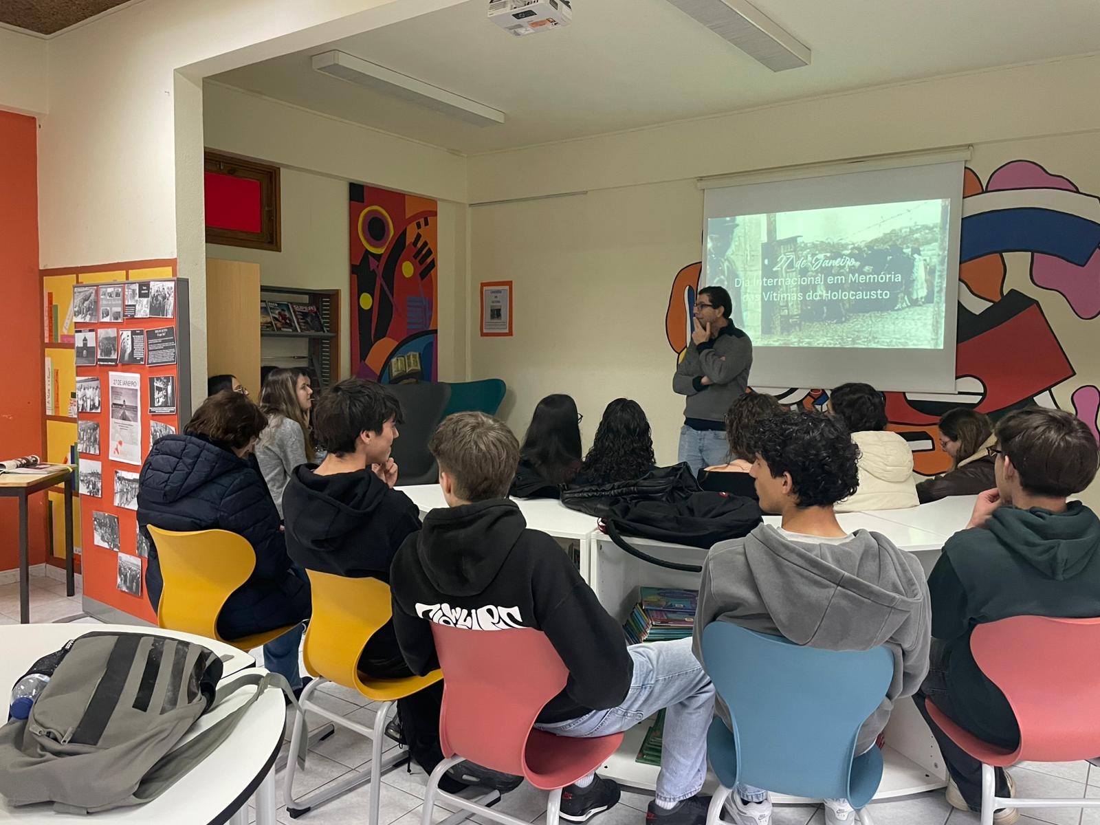 No âmbito da comemoração do Dia Internacional em Memória das Vítimas do Holocausto, assinalado a 27 de janeiro, os alunos do 12.º ano visitaram, esta semana, a Biblioteca Escolar do AEFA para recordar e refletir sobre este importante momento da História.