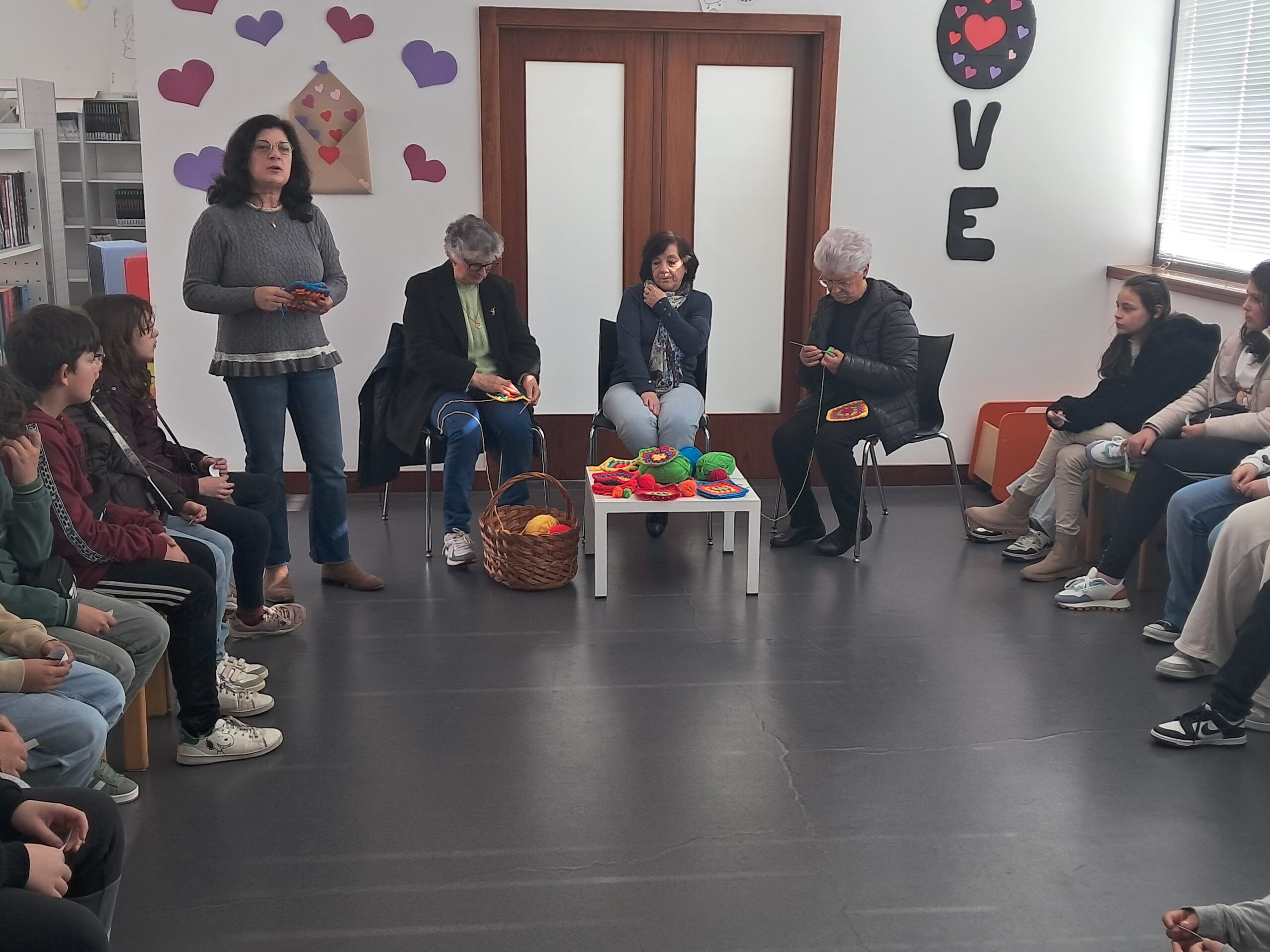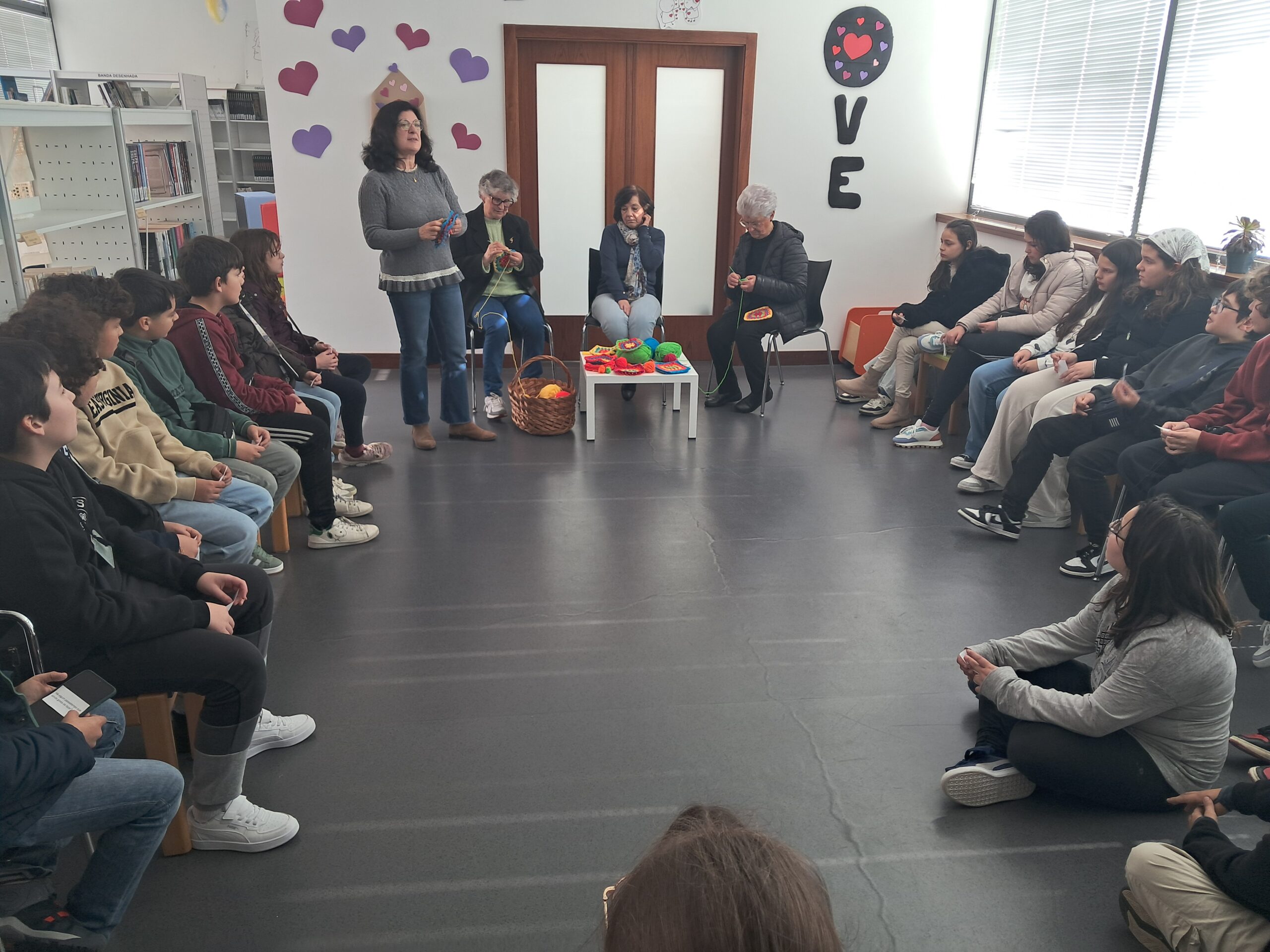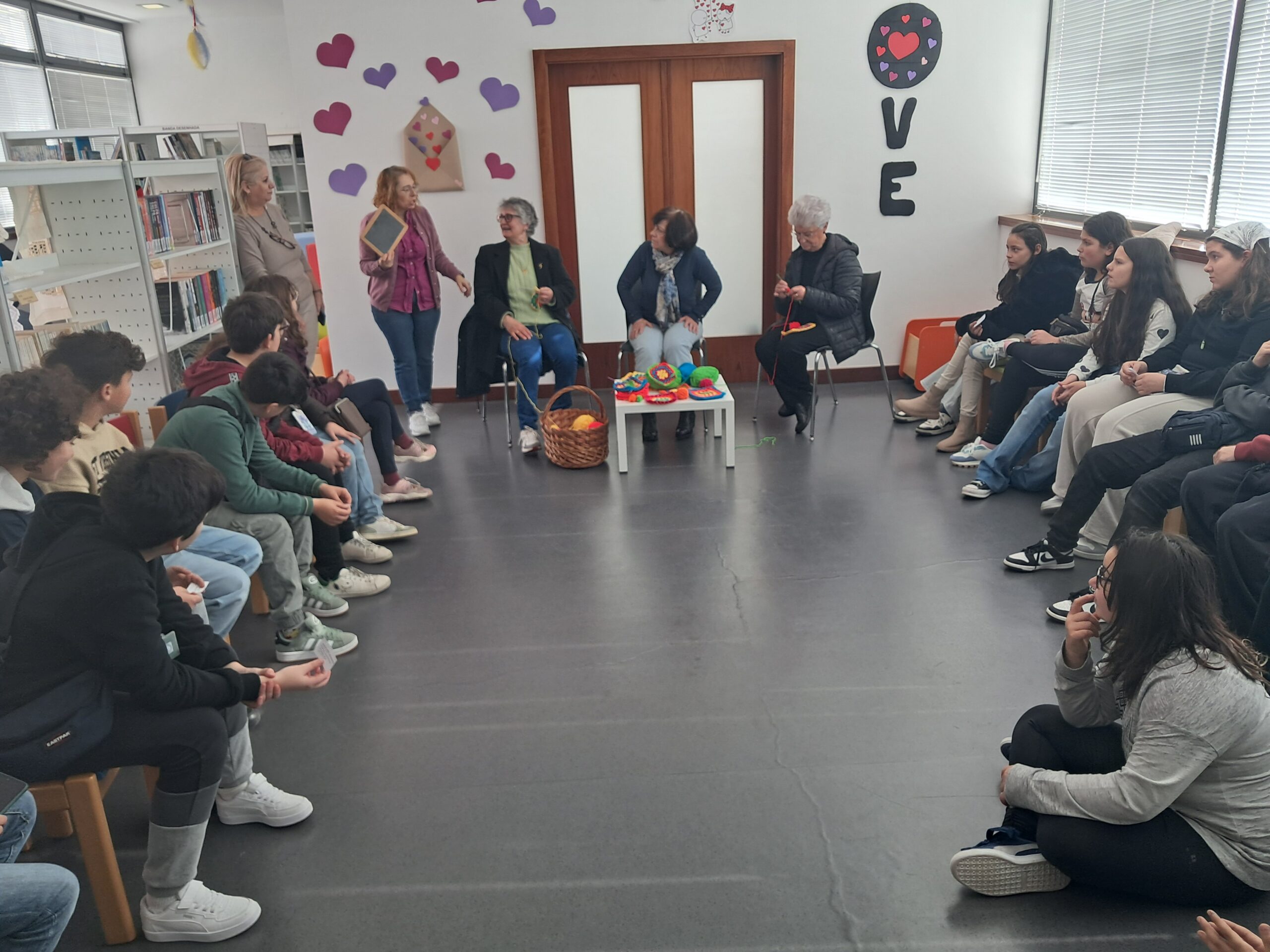 Uma das atividades mais interessantes das Jornadas das Línguas e Literaturas/Semana da Leitura 2025, foi a Atividade Intergeracional na Biblioteca Municipal Maria Teresa Maia Gonzalez “Entre linhas, pontos e contos”, que reuniu as turmas do 5º e 6º ano e pessoas idosas/reformadas para uma partilha de histórias e experiências de vida.