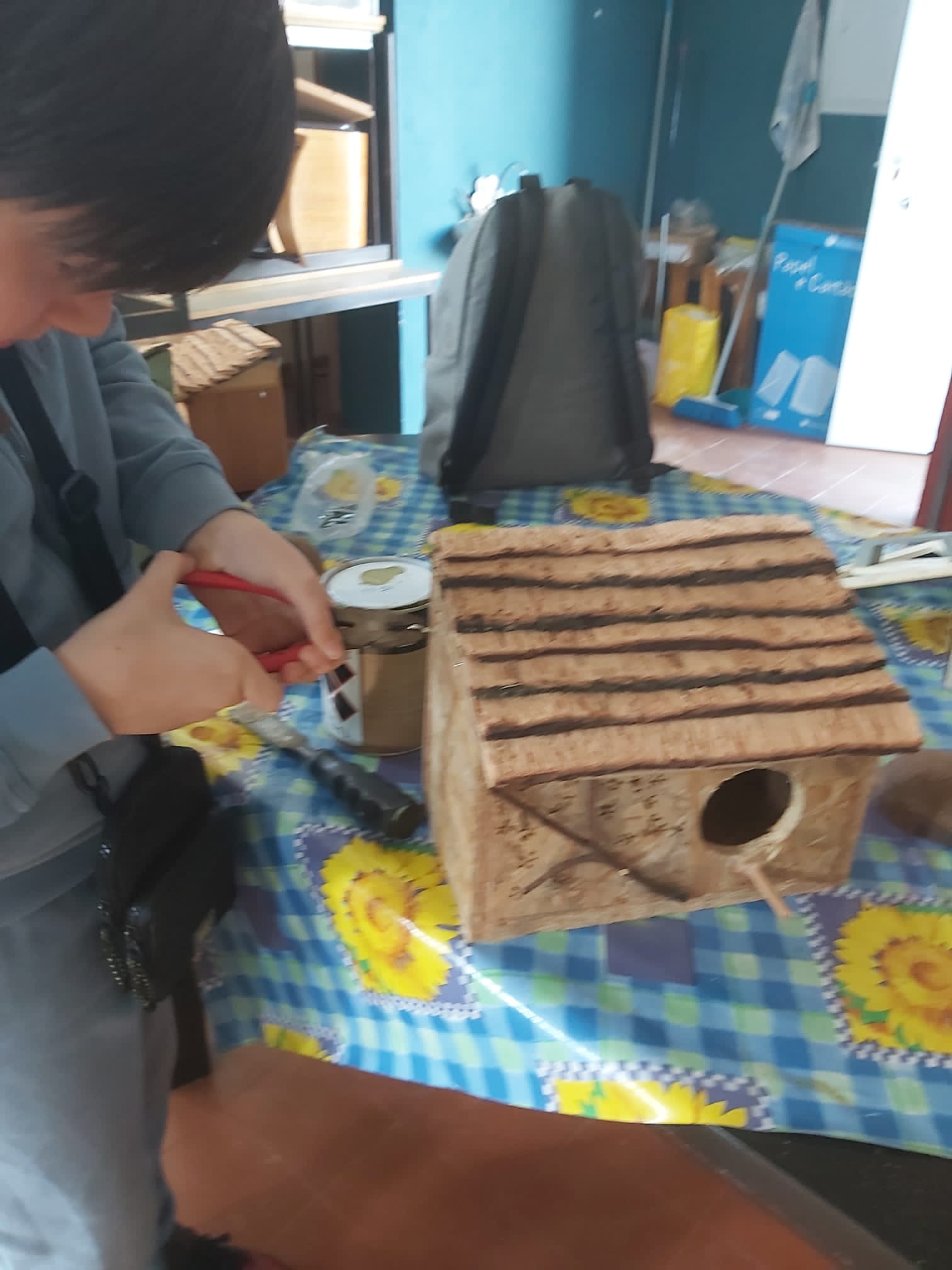 Numa estreita colaboração entre Eco-Escolas e o Clube de Arte na Ponta dos Dedos, recorrendo a materiais recicláveis, foram construídos ninhos que serão colocados em árvores do recinto escolar da escola sede. O objetivo será proporcionar pontos de nidificação/abrigo a passeriformes, procurando contribuir para a preservação de biodiversidade no espaço Escola.