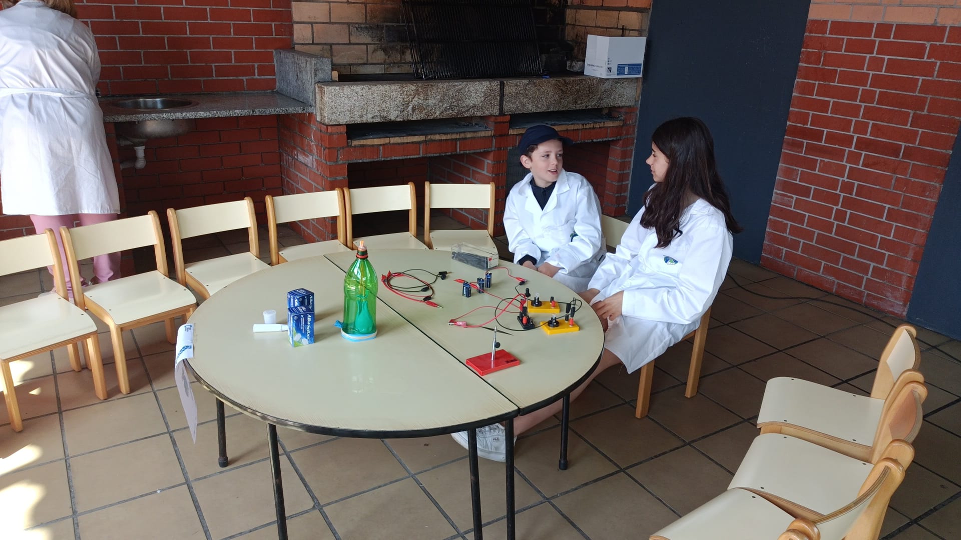 A colaboração do nosso Clube consistiu na instalação de diferentes atividades práticas onde a pequenada do ensino pré-escolar e 1º ciclo pôde aprender brincando. Para tal a ajuda dos jovens cientistas “clubistas”, Hugo Pedro, Matilde Fernandes, Matilde Sousa e Núria Gomes, revelou-se muito preciosa, na forma como explicaram, aos seus colegas mais jovens, cada uma das experiências disponibilizadas.