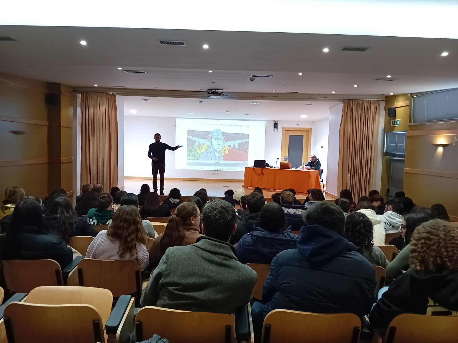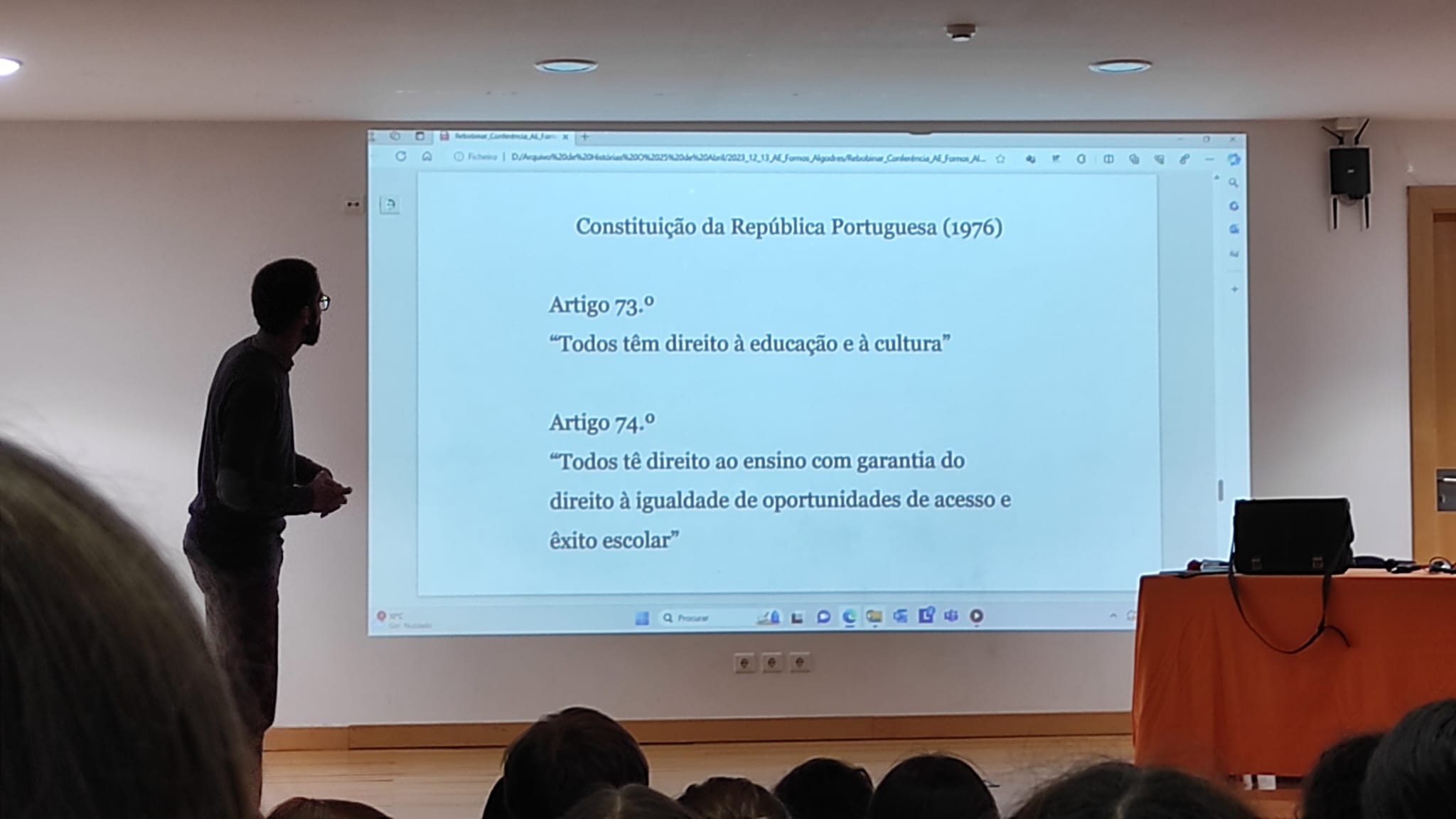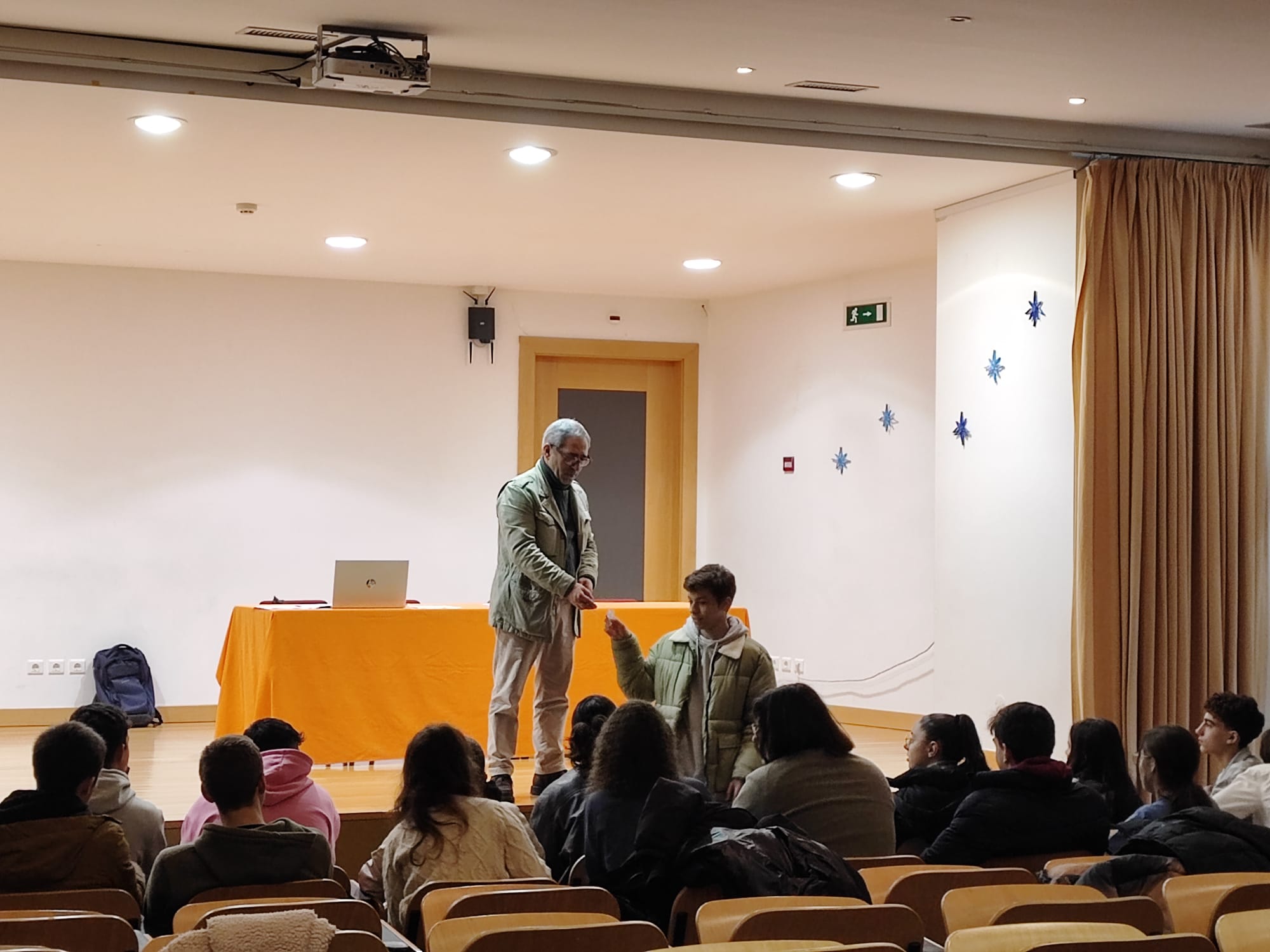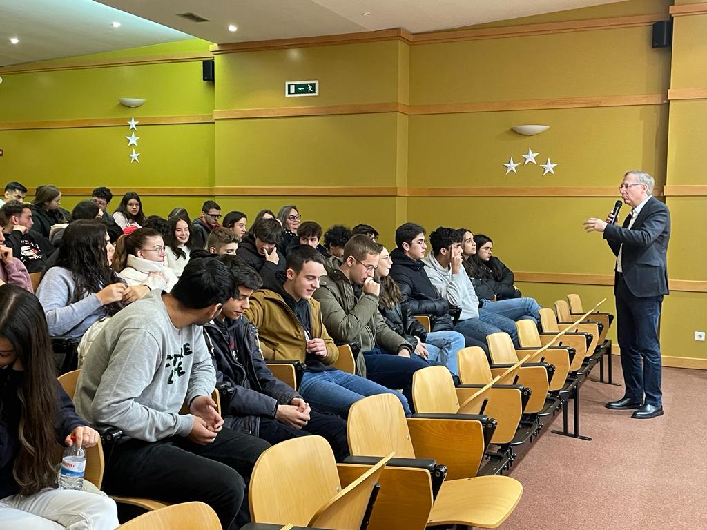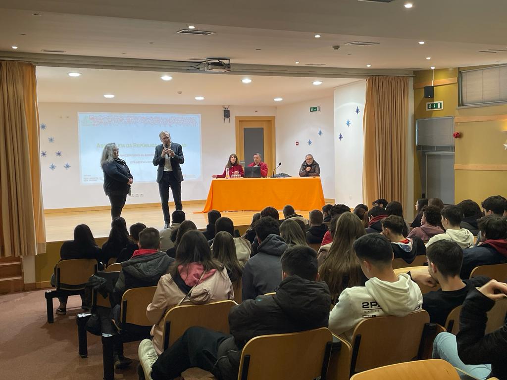 Este ano letivo, “Viver Abril na Educação: caminhos para uma escola plural e participativa” foi o tema do Projeto Parlamento dos Jovens, tanto no ensino básico, como no ensino secundário. Neste contexto, os alunos do ensino secundário assistiram à conferência “Arquivo de Histórias: o 25 de Abril” dinamizada pelo Dr. Pierre Marie (Projeto Rebobinar), no dia 13 de dezembro. Posteriormente, o Dr. João Prata, também antigo professor no AEFA e deputado da Assembleia da República, dinamizou, no dia 8 de janeiro de 2024, uma sessão informativa com os mesmos alunos.