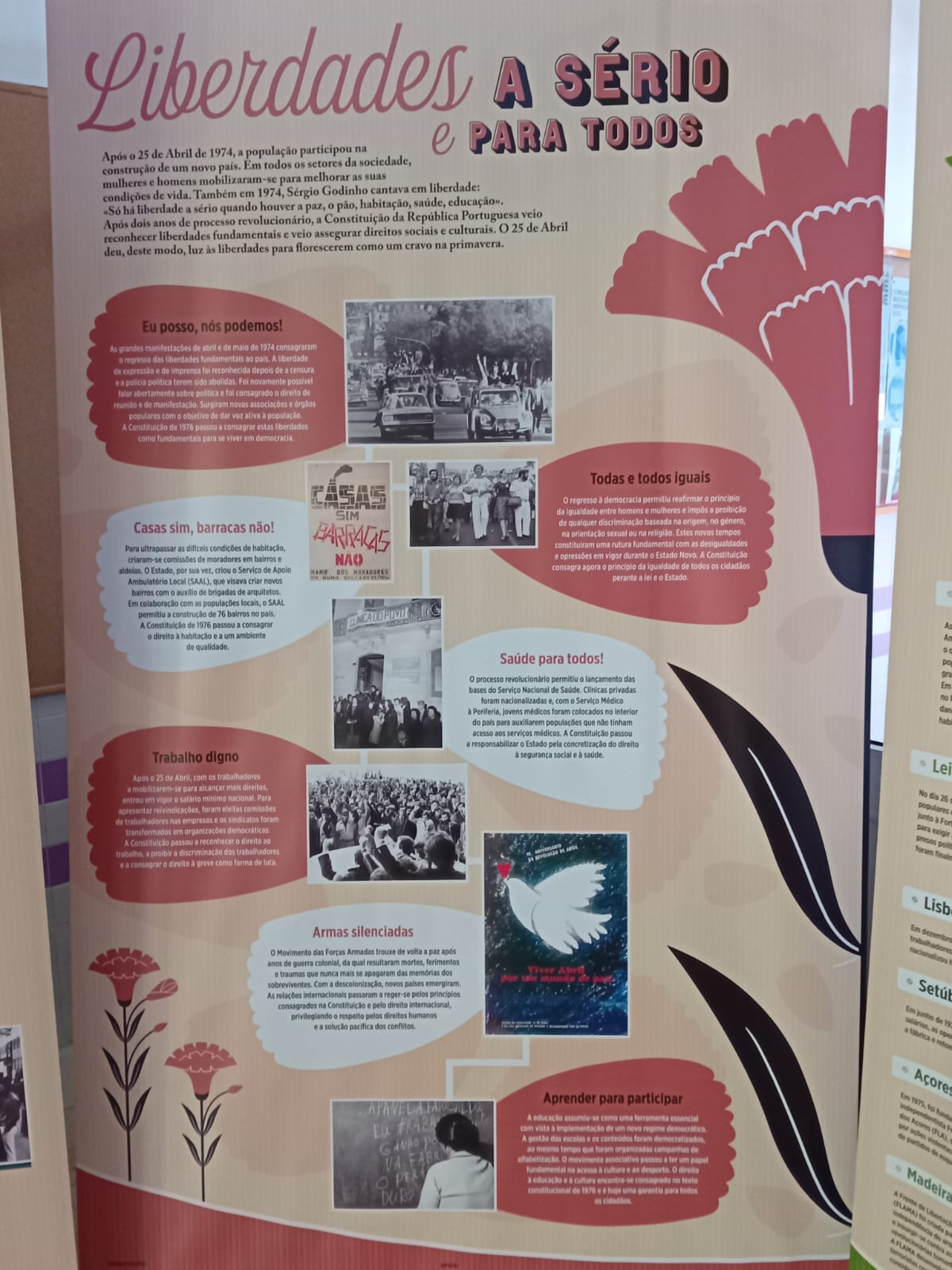 Integrado no projeto e em parceria com a substrutura de história e geografia, esteve patente no átrio da escola sede uma exposição cedida pelo Centro de documentação 25 de Abril da Universidade de Coimbra intitulada “O Legado de um Cravo” que celebra os 50 anos do 25 de Abril de 1974. A exposição, composta por 12 “roll-ups” apresentou uma caracterização do período da História de Portugal que decorreu entre 1926 e 1974 e onde a opressão sobre a população e a falta de liberdade foram uma constante…