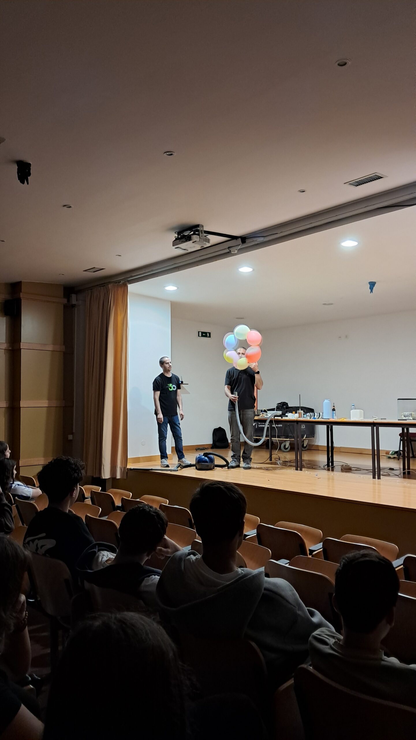 Ao longo das sessões, a ciência ganhou vida com experiências de eletricidade e magnetismo, demonstrações surpreendentes com gases, jogos de luz e som, e explicações simples e envolventes.