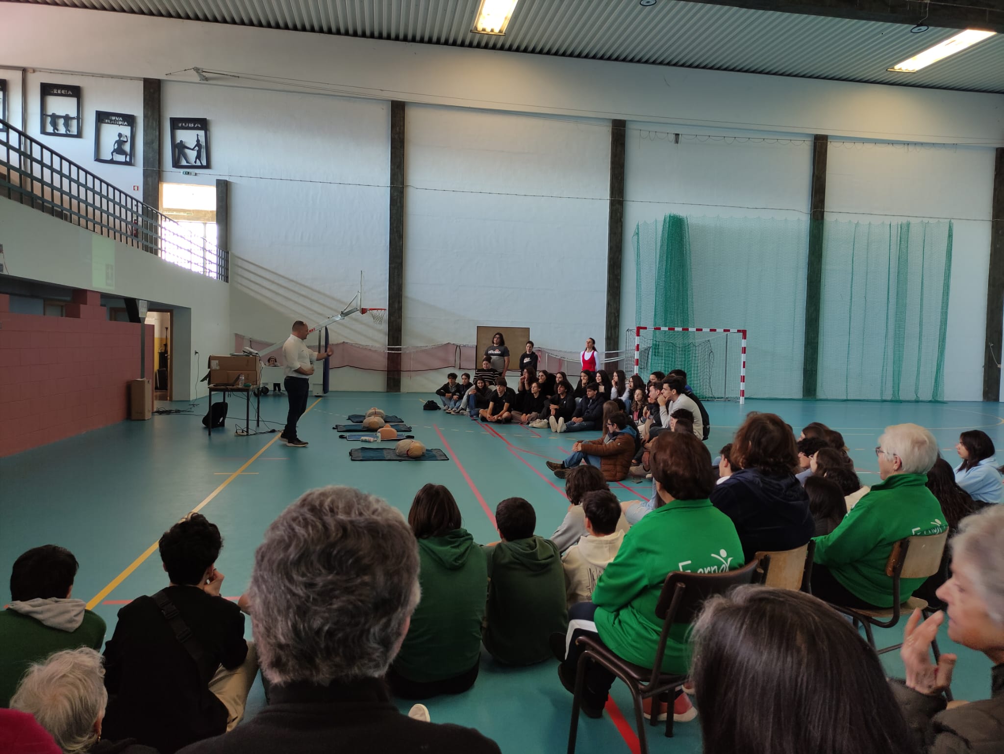 Esta foi direcionada, essencialmente, para os alunos do secundário, tendo sido abordados temas como a prestação de socorro a uma vítima, a realização de chamada 112, a posição lateral de segurança e manobras de desobstrução da via aérea.