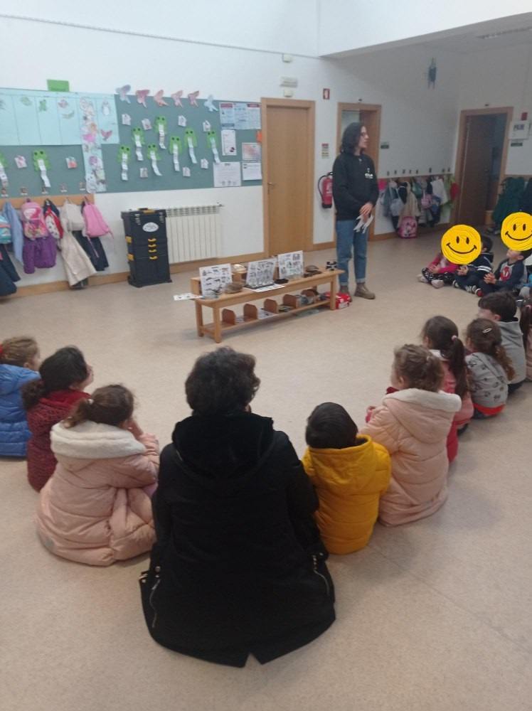 Durante o mês de janeiro os jardins de infância desenvolveram diversas atividades abordando a temática da fauna e sua importância, em especial, a que existe no nosso concelho. No dia 26 de janeiro contamos com a colaboração do Biólogo Hugo Sousa e de dois elementos do CERVAS (Centro de Ecologia, Recuperação e Vigilância de Animais Selvagens) que se deslocaram ao jardim de infância de Fornos de Algodres, expondo diverso material, respondendo às perguntas que colocámos e sensibilizando-nos para a importância de protegermos os animais selvagens.