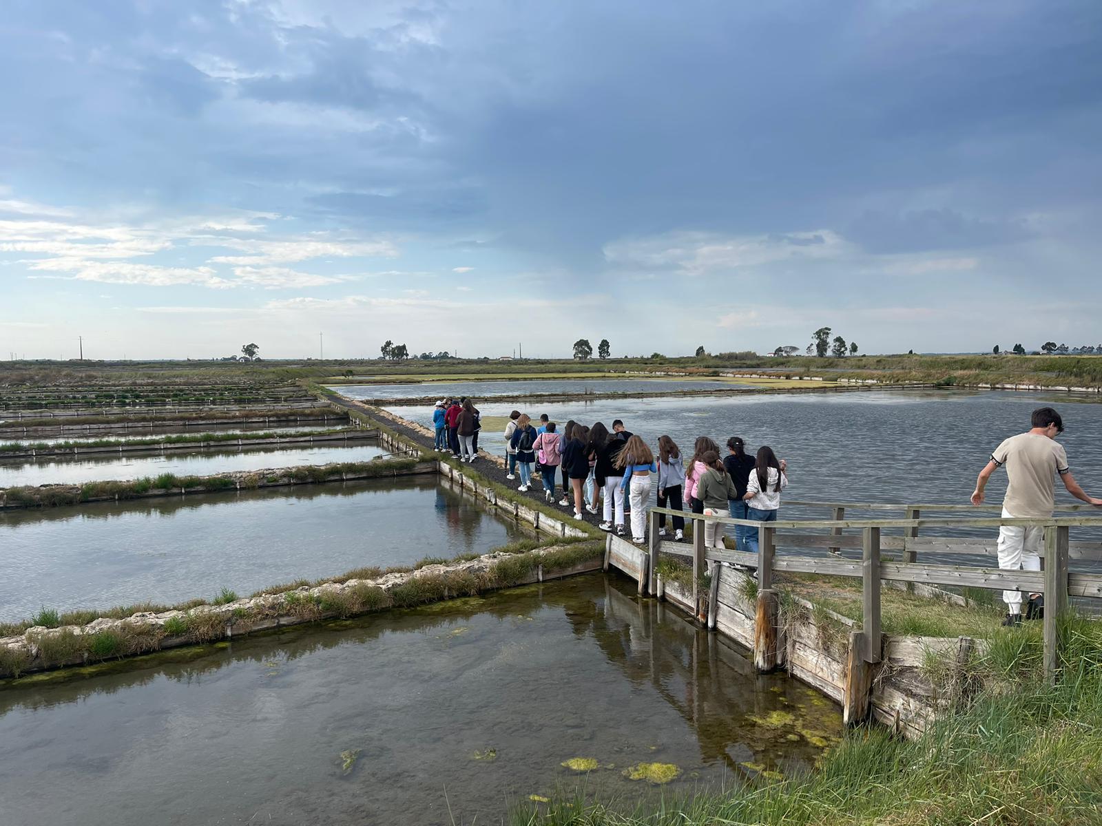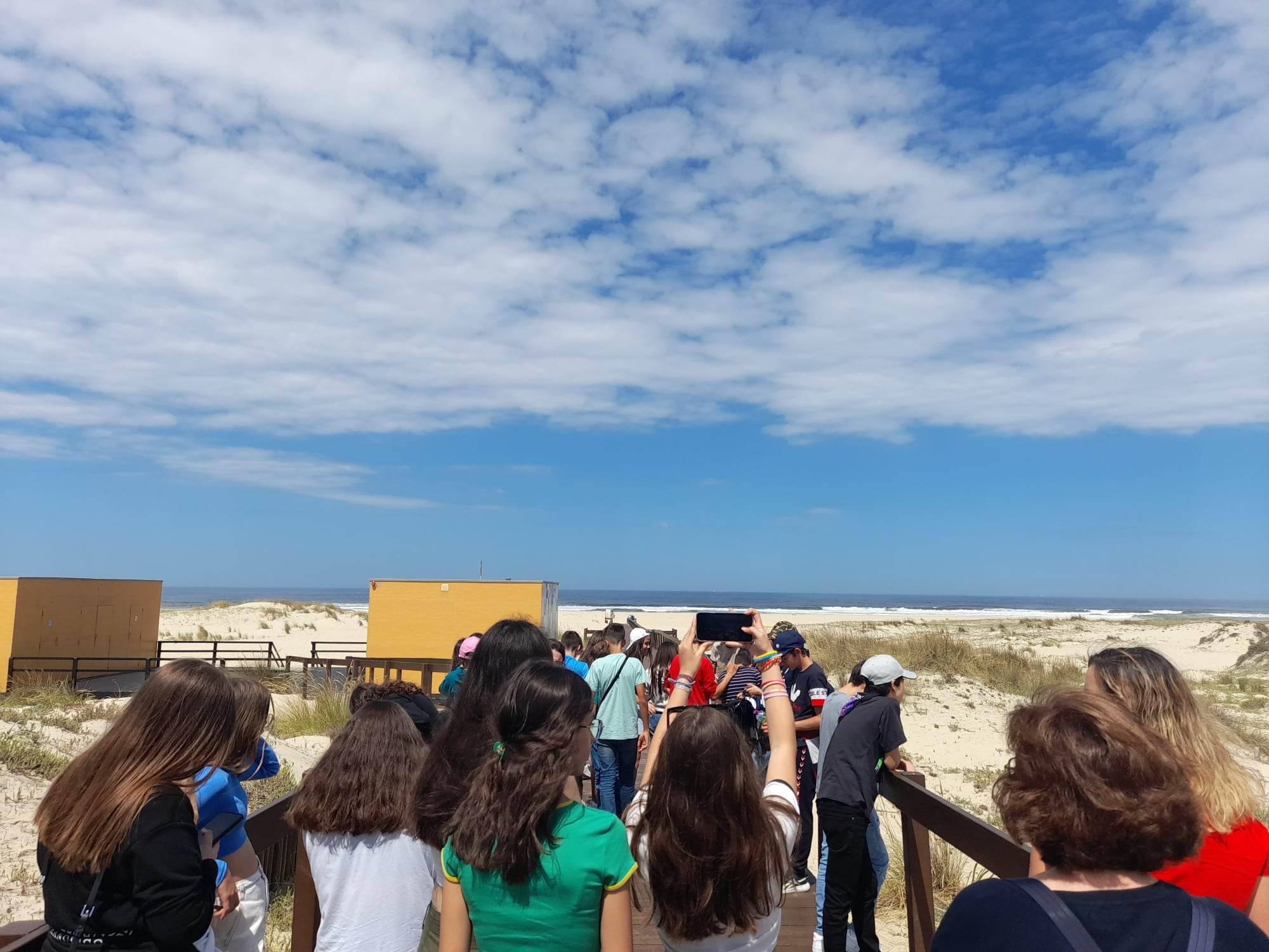 No passado dia 24 de maio as turmas do 7º A e 7º B, no âmbito do desenvolvimento do domínio de autonomia curricular, nomeadamente das aprendizagens essenciais das disciplinas de Ciências Naturais e Geografia, e em parceria com a CLDS, os/as alunos/as tiveram oportunidade de visitar a Reserva Natural das Dunas de S. Jacinto, efetuar a travessia de ferryboat da ria de Aveiro entre o porto de S. Jacinto e o Forte da Barra; visita guiada ao Museu Marítimo e Navio-Museu Santo André e última paragem visita às salinas “Marinha do Noeirinha”. Nesta prática pedagógica nos espaços referidos permitiram a apropriação das aprendizagens realizadas em contexto de sala de aula e permitiu aos estudantes conhecerem novas realidades e consolidarem conhecimentos.